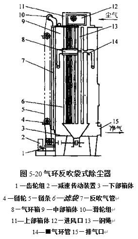 氣環(huán)反吹袋式除塵器宜采用氈類(lèi)濾料.該種除塵器最大的缺點(diǎn)是濾袋很容易因氣環(huán)的移動(dòng)而磨損,此外氣環(huán)的移動(dòng)機(jī)構(gòu)故障多.因而阻礙其推廣應(yīng)用. 含塵氣流從進(jìn)風(fēng)口進(jìn)入上部箱體,然后進(jìn)入濾袋,凈化后的氣體通過(guò)濾袋進(jìn)入中部箱體,再由下花...