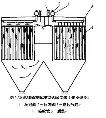 離線清灰脈沖袋式除塵器是分室清灰脈沖袋式除塵器的一種型式,分室清灰是為了避免或削弱脈沖袋式除塵器在清灰過(guò)程中存在的粉塵再次附著現(xiàn)象.具體做法是將除塵器分隔成若干倉(cāng)室,并在逐室停止過(guò)濾的狀態(tài)下實(shí)行脈沖.