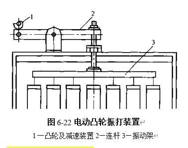 電動(dòng)凸輪振打裝置由凸輪連桿,振動(dòng)架以及電動(dòng)機(jī)減速裝置組成. 電動(dòng)偏心輪振打裝置由偏心輪,彈簧,振動(dòng)架以及電動(dòng)機(jī)傳動(dòng)裝置組成.
