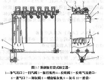 頂部振打袋式除塵器主要由箱體,灰斗和振打機構等組成.由于清灰的需要,除塵器分設若干倉室.置于倉室內的濾袋下端開口,固定于倉室下部的底板上,以帽蓋封閉的上端吊掛在振打機構的吊架上.在箱體上裝有閥門及振打機構.