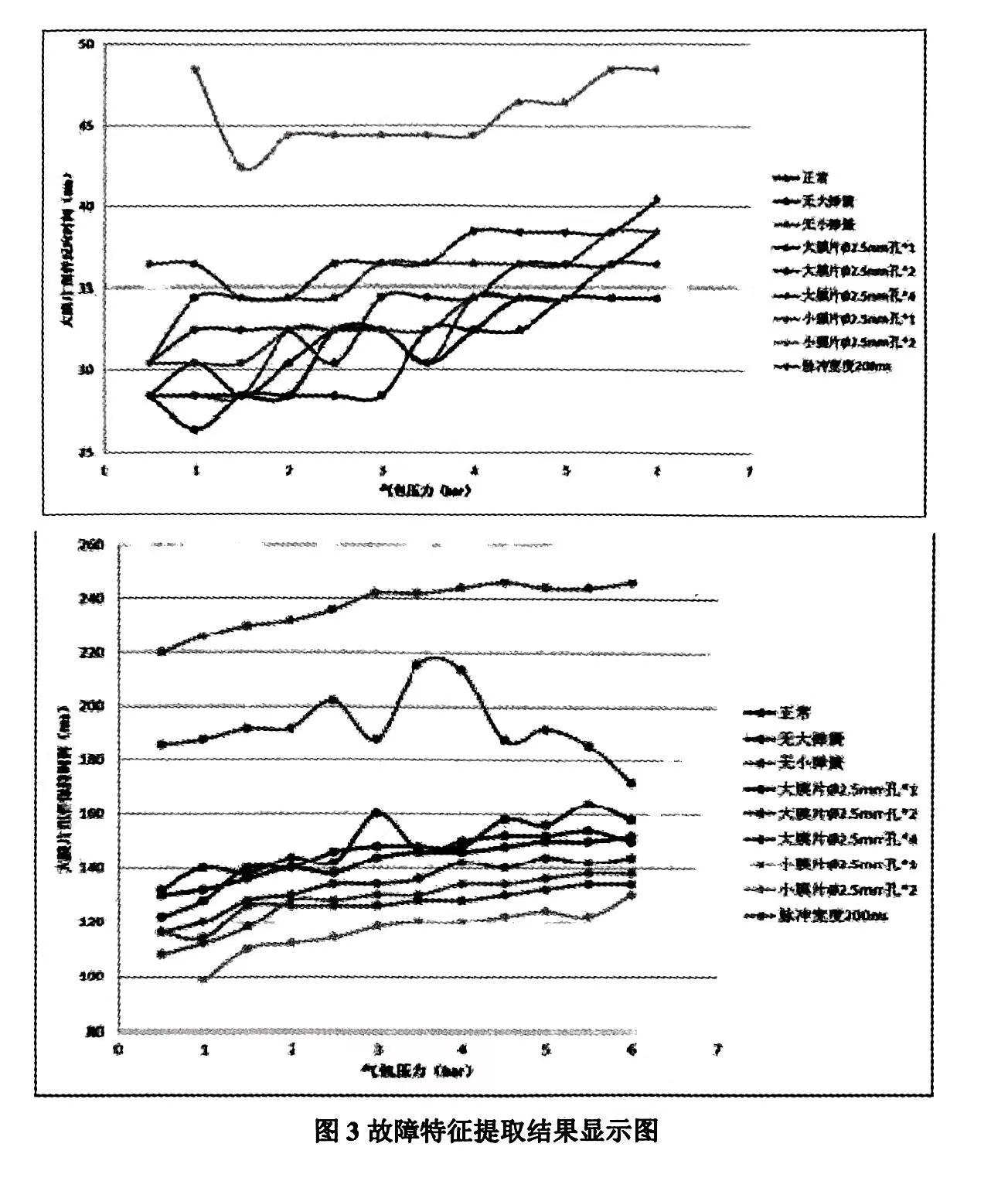 在確定了所要診斷的電磁脈沖閥故障類型和傳感器的選用方案之后,需要確定電磁脈沖閥的故障模擬實驗,本文采用移除大彈簧模擬大彈簧失效,移除小彈簧模擬小彈簧失效,大膜片沖不同數量的□2.5mm模擬大膜片破損,小膜片沖不同數量的□...