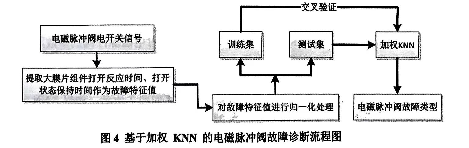 本節根據選取的電磁脈沖閥的故障特征的分布特點,驗證加權KNN算法識別電磁脈沖閥多種故障的有效性.
