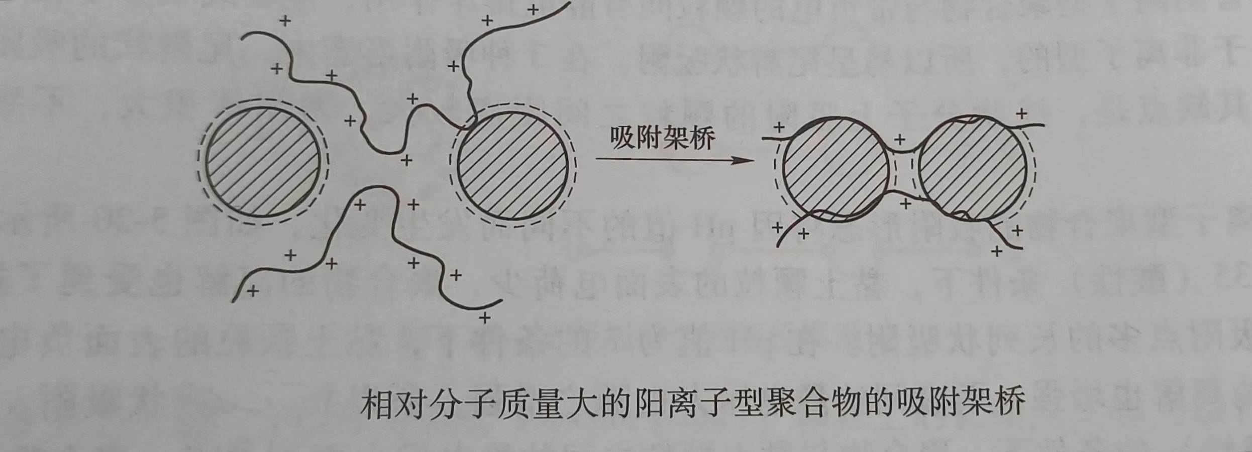 陰離子型聚合物與帶負電的顆粒間有靜電排斥作用,但其線狀分子在水中的伸展性好于非離子型的,所以易呈尾辮狀吸附.